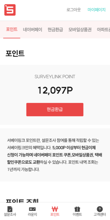 갤럽에서 아주 가끔식 메일로 서베이가 온다. 그래서 리워드가 많이 쌓이지는 않았음.